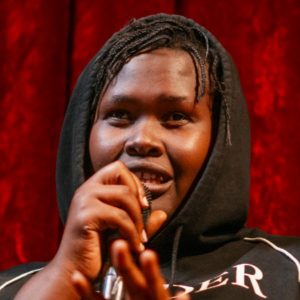 Patience Laker is a multi-award-winning Ugandan spoken word artist and poet whose work explores themes of womanhood, identity, and resilience. Since her early performances with the Katochi Poets collective, she has become one of Uganda’s most compelling poetic voices, known for transforming verse into vivid, musical storytelling. Laker has won several accolades, including the Gender Equality Voices Competition and the East Africa Poetic Hour Battle. At the Arise Woman! Comedy Jam 2025, she opened the evening with a stirring performance that blended rhythm and emotion—her delivery commanding silence one moment and sparking applause the next. Through her art, Laker continues to inspire and affirm the power of poetry as a voice for change and healing.